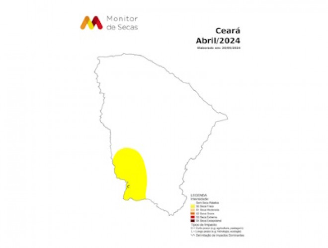 O mapa mais recente do Monitor de Secas, publicado nesta segunda-feira (20), aponta que o Ceará apresentou o cenário mais positivo desde junho de 2023.
